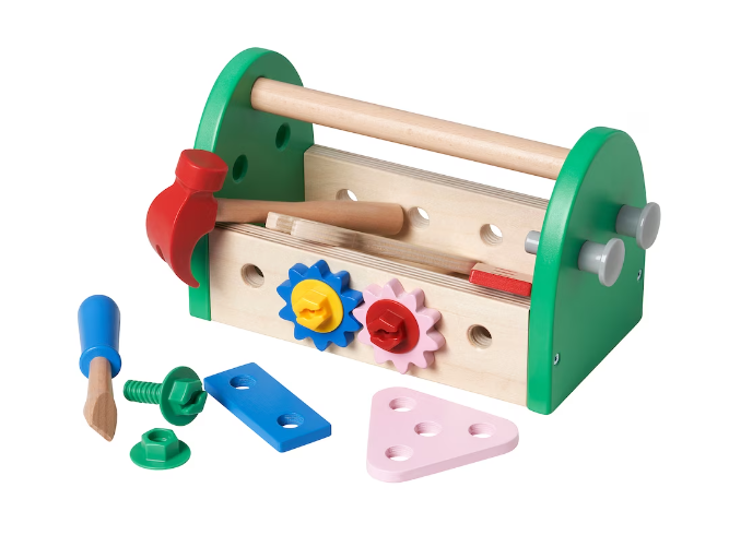Desarrolla las habilidades motoras de los niños con una caja de herramientas de juguete. Desde tornillos y tuercas hasta martillo y llave inglesa, la caja incluye todo lo que el pequeño manitas de casa necesita para poner manos a la obra. La caja está diseñada para que los niños puedan utilizar las piezas en sus agujeros con rosca mientras ponen a prueba sus destrezas con las herramientas.