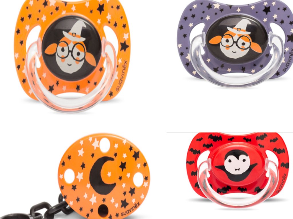 Los bebés disfrazados están monísimos, pero, si además, no quieres que a tu bebé le falte un detalle para estar en casa ambientado en esta fiesta, el complemento perfecto para el disfraz puede ser un chupete temático. Estos de Suavinex, por ejemplo, tienen tetinas tanto anatómicas como fisiológicas avaladas por la Sociedad Española de Odontopediatría, están disponibles de 0 a 18 meses y todos ellos están inspirados en la celebración de Halloween.