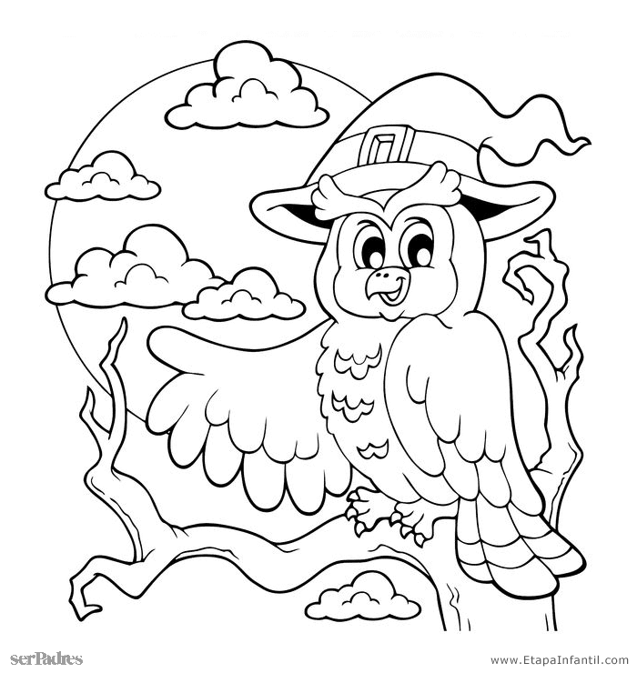 2. Dibujo de Halloween de búho con sombrero de bruja