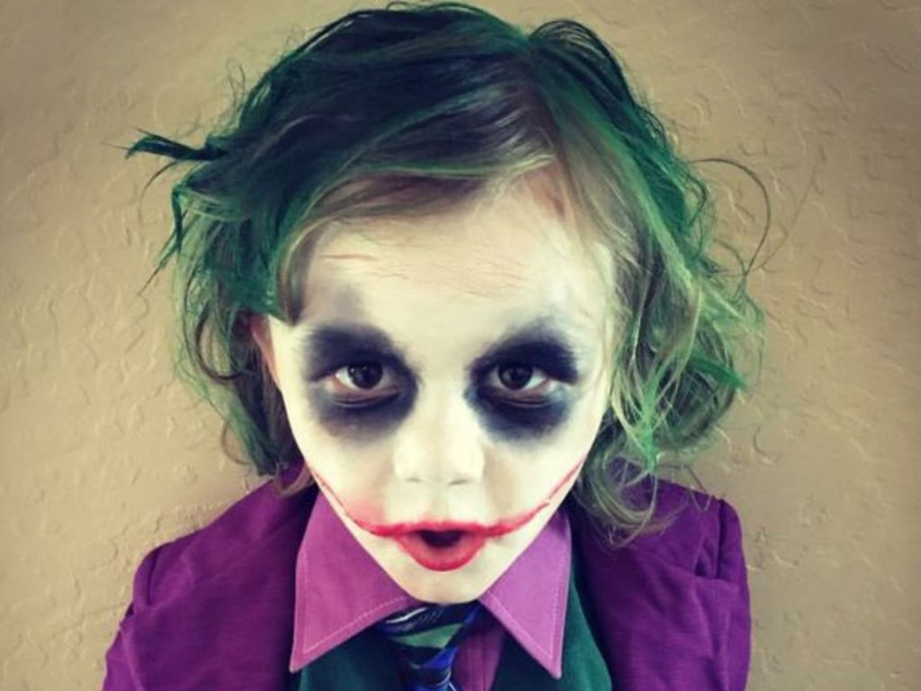 Otra idea de disfraz muy original para Halloween es la de vestir a los niños del personaje de la película de Batman, el Joker. En este caso, necesitarás una chaqueta morada, o en su defecto una camisa, un chaleco verde y una corbata. El resto del disfraz lo complementa el maquillaje, para el que necesitarás un tinte verde para el cabello que puedes encontrar en cualquier tienda de disfraces. Los niños seguro que se lo pasarán bomba durante las pruebas de vestuario y quedarán encantados con el resultado.