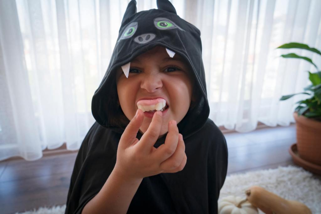 El disfraz de murciélago es una opción divertida y fácil de hacer para los pequeños en Halloween. Para lograr este look, solo necesitarás ropa negra, que puede incluir un pantalón y una camiseta o sudadera. La clave está en la sudadera con capucha, donde podrás coser o pegar unos ojos y orejas de murciélago, creando un efecto encantador y aterrador al mismo tiempo. Si quieres añadir un toque extra, considera hacer unas alas de murciélago con tela negra o cartón que se sujeten a los brazos o la espalda.