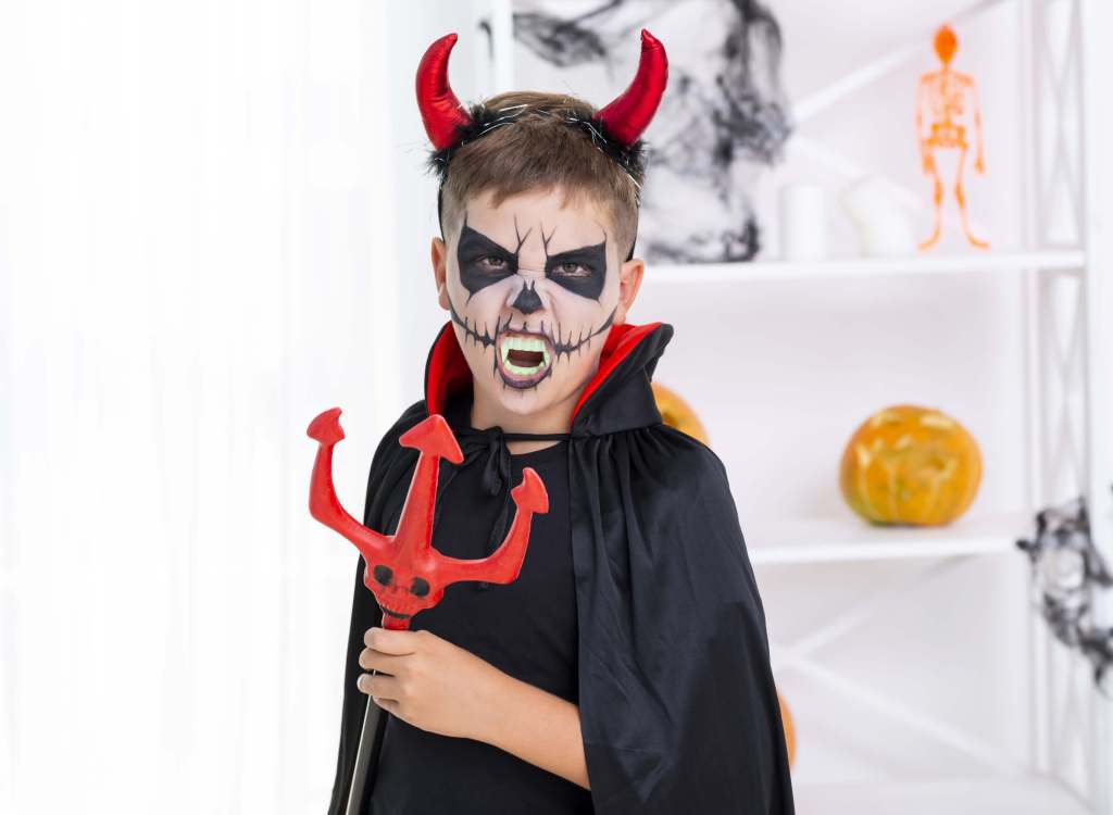 Disfrazarse de demonio es otra idea muy chula para la noche de Halloween. La clave de su éxito está en elegir complementos de color rojo y combinarlo con un maquillaje discreto pero aterrador. Por supuesto, no puede faltar una capa, también roja, que puedes confeccionar en casa con un trozo de tela o comprar en cualquier tienda de disfraces y un tridente para conferirle ese aspecto poderoso que transmite la sola presencia del demonio.