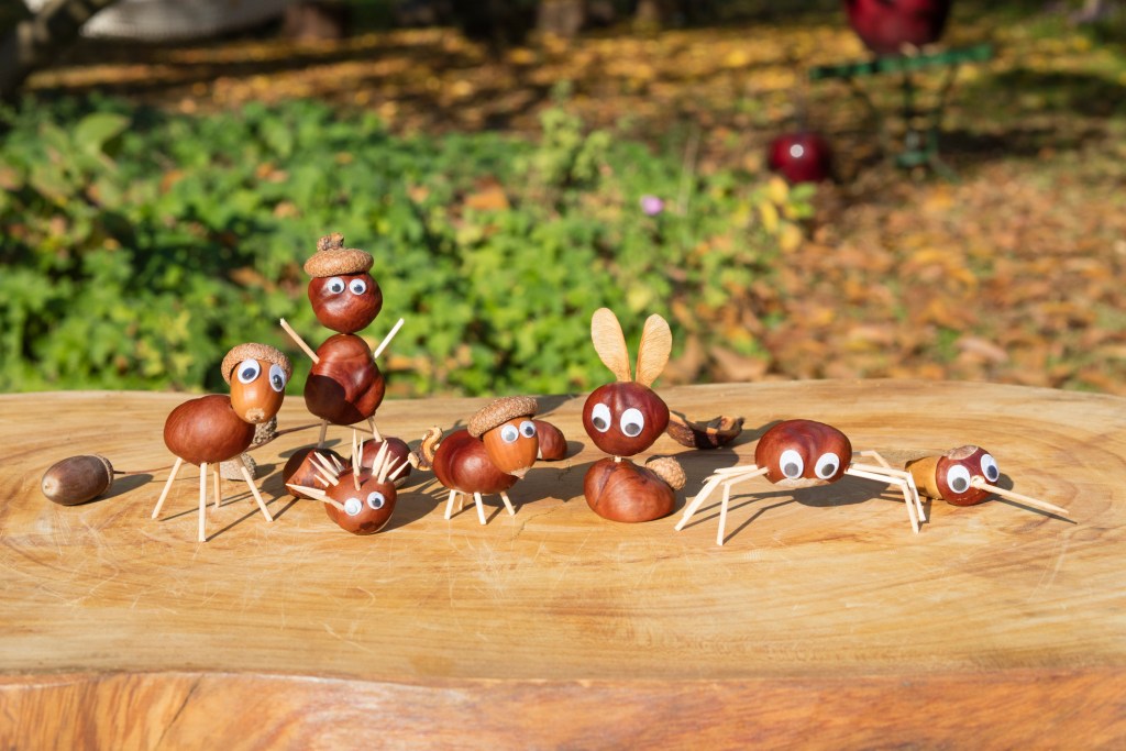 Estos murciélagos no dan miedo, ¡porque están hechos con castañas! Para crear esta manualidad solo se necesitan algunas castañas, ojos saltones y cartulina o goma eva negra para formar las alas. También podéis hacer hormigas, peces o pájaros. ¡Dad rienda suelta a vuestra imaginación! Es una actividad muy sencilla y divertida, perfecta para Halloween o para una tarde creativa de otoño.