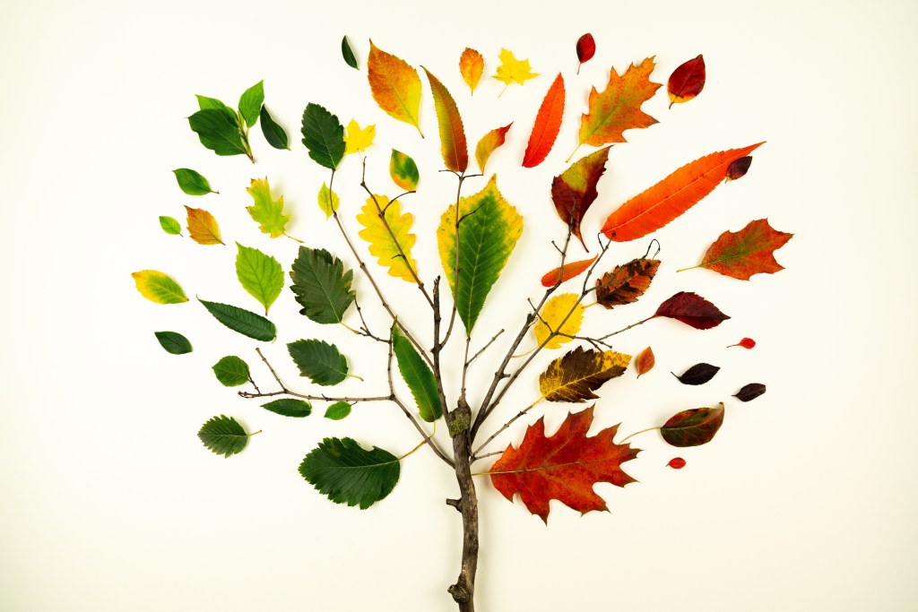 Árbol otoñal con hojas de diferentes colores