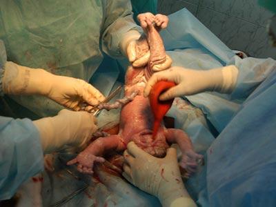 Una vez que el niño está fuera, se corta el cordón umbilical y se extrae la placenta manualmente.