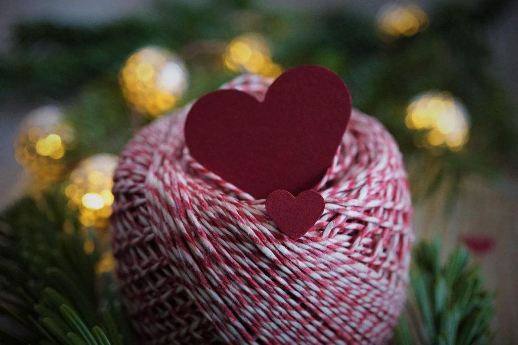 Ovillo de lana y corazón de cartulina