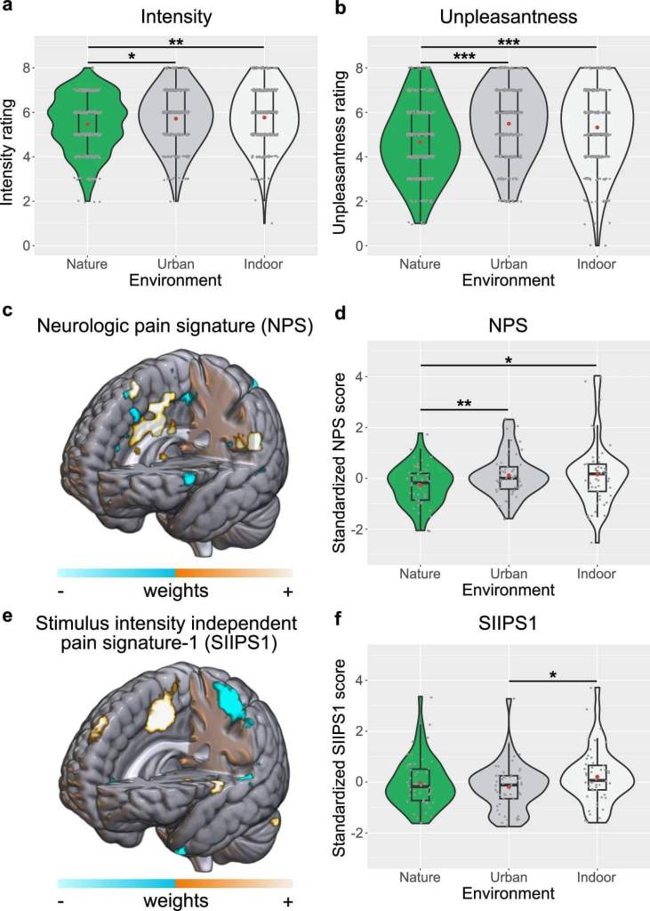 - Steininger, M. O., White, M. P., Lengersdorff, L., Zhang, L., Smalley, A. J., Kühn, S., & Lamm, C. (2025). Nature exposure induces analgesic effects by acting on nociception-related neural processing. Nature Communications, 16, Article number: 2037. https://doi.org/10.1038/s41467-025-56870-2.